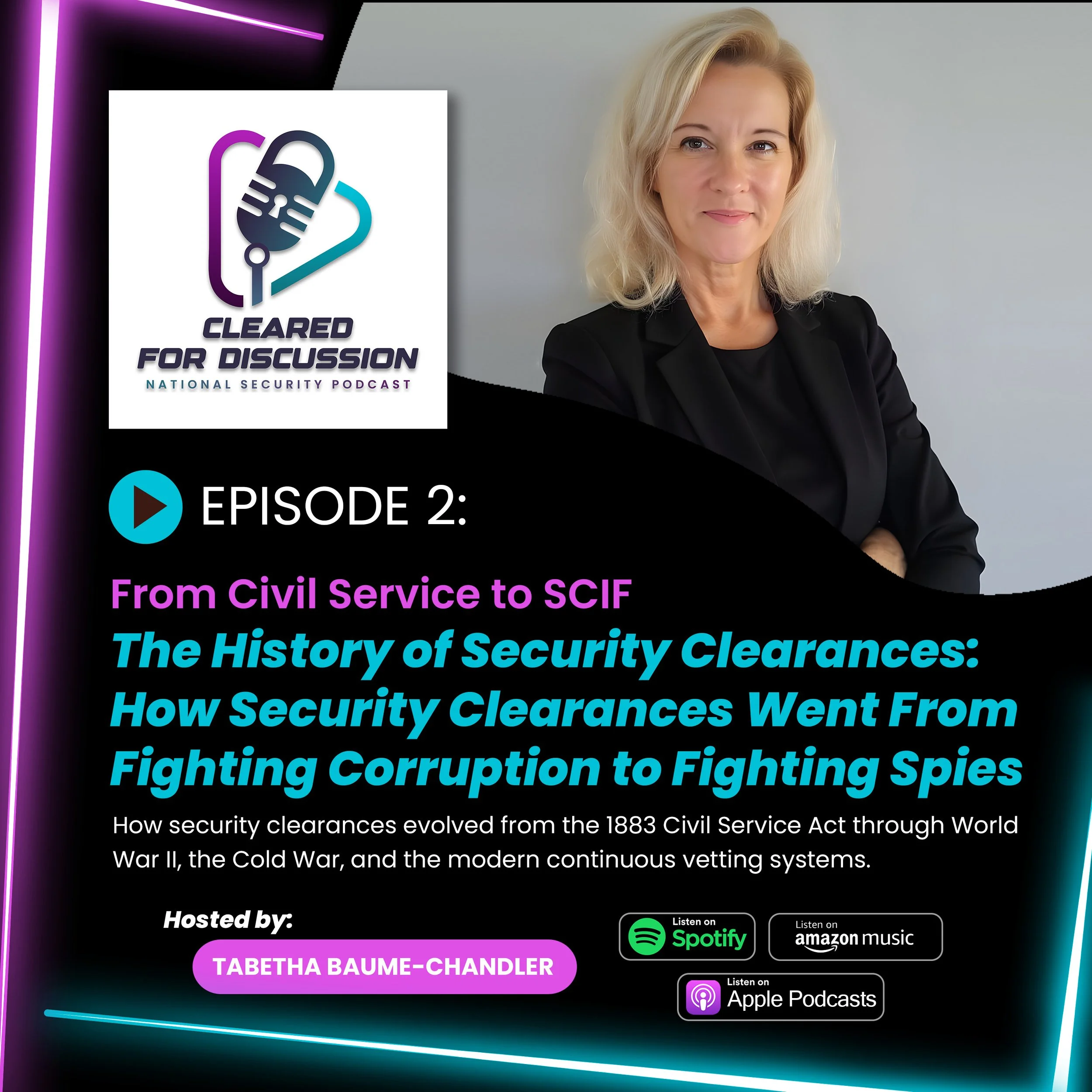 In this powerful second episode of the CFD Podcast, host Tabetha takes listeners on a deep dive through the rich history of the U.S. security clearance system. From the Civil Service Act of 1883 to the modern-day SCIF, the episode explores how national security, political reform, and private industry partnerships shaped the clearance landscape we know today.
