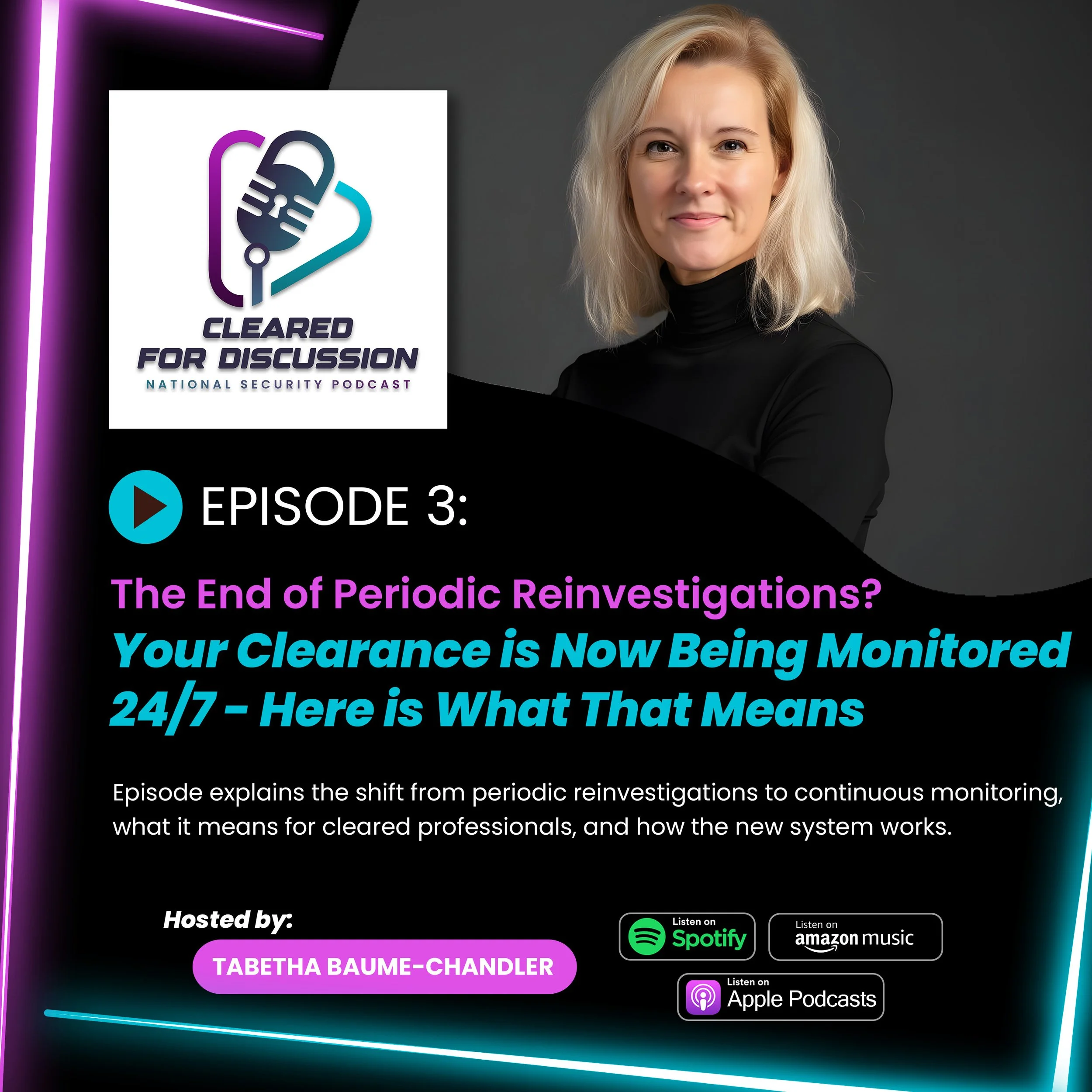 In this impactful third episode of the CFD Podcast, host Tabetha explores one of the most transformative shifts in the world of security clearances—the move from periodic reinvestigations to continuous vetting.